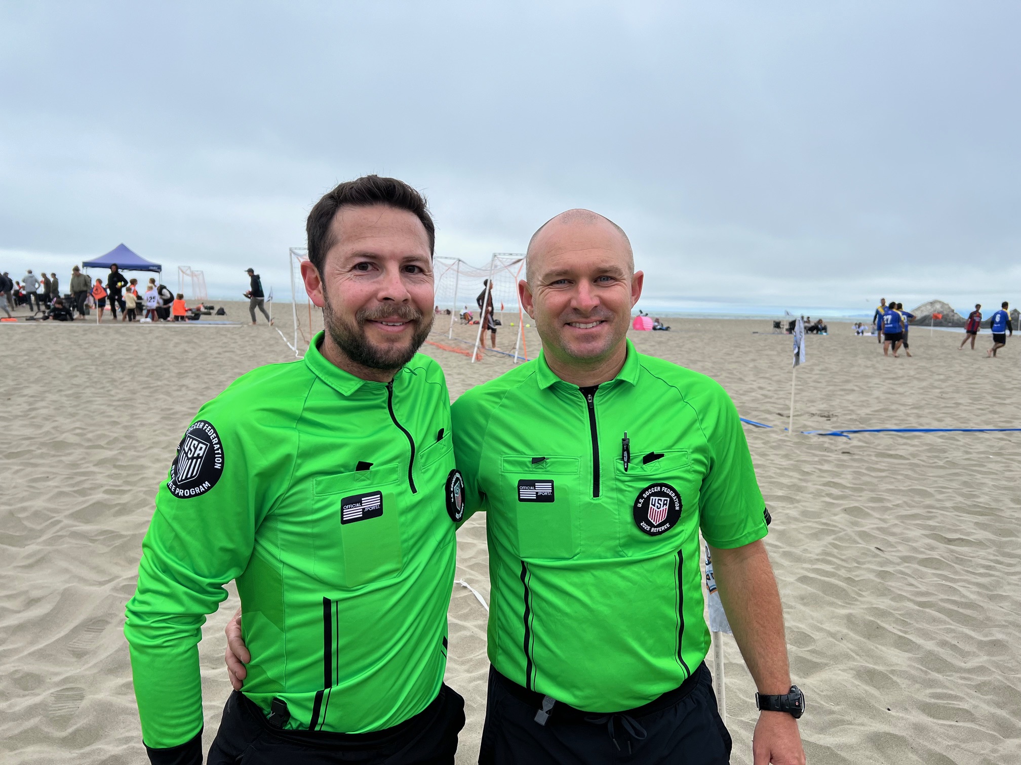 Both referees developed through years of work at Pro-Am Beach Soccer (PABS) events, learning the craft on the sand at major tournaments including Santa Cruz, Ocean Beach in San Francisco, and multiple editions of the Oceanside beach soccer competition. Their progression reflects a pathway that has been built over time through consistent high-level matches, mentorship, and the unique demands of officiating the beach game.